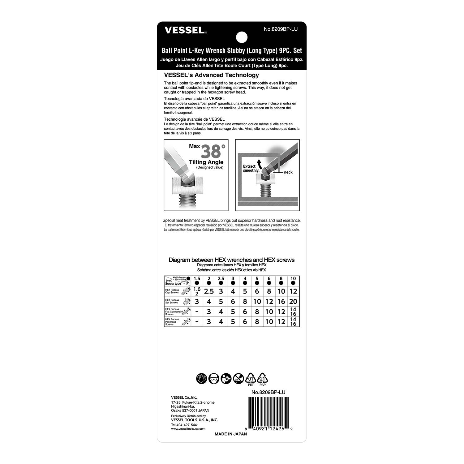 * Extra Superalloy, VESSEL's Unique Steel Material, fully hardened and with a magnet. Made in Japan.