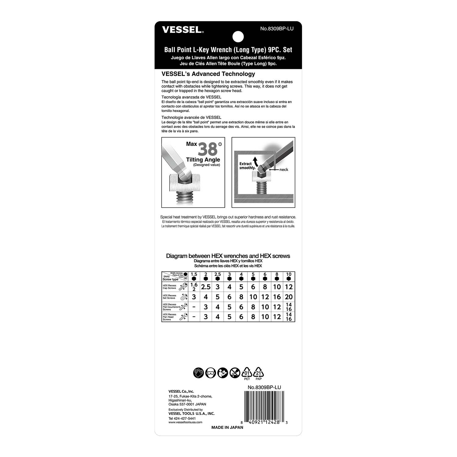 * Extra Superalloy, VESSEL's Unique Steel Material, fully hardened and with a magnet. Made in Japan.