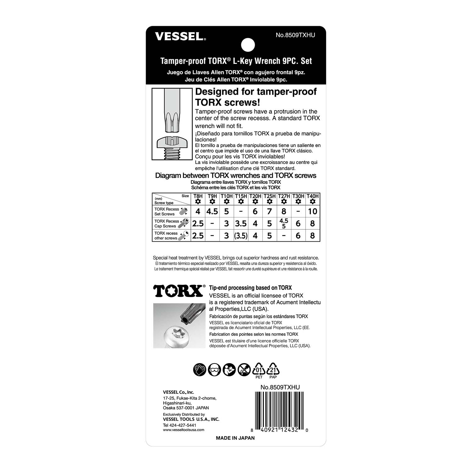 * Extra Superalloy, VESSEL's Unique Steel Material, fully hardened. Made in Japan.