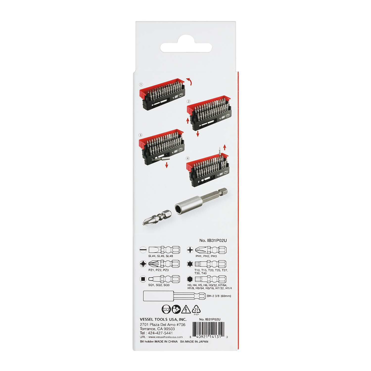 (+1, +2, +3, PZ1, PZ2, PZ3, SL4, SL6, SL8, SQ1, SQ2, SQ3, T10, T15, T20, T25, T27, T30, T40, H3, H4, H5, H6, H3/32, H7/64, H1/8, H9/64, H3/16, H7/32, H1/4" x 30mm, Magnet Bit Holder 50mm)
