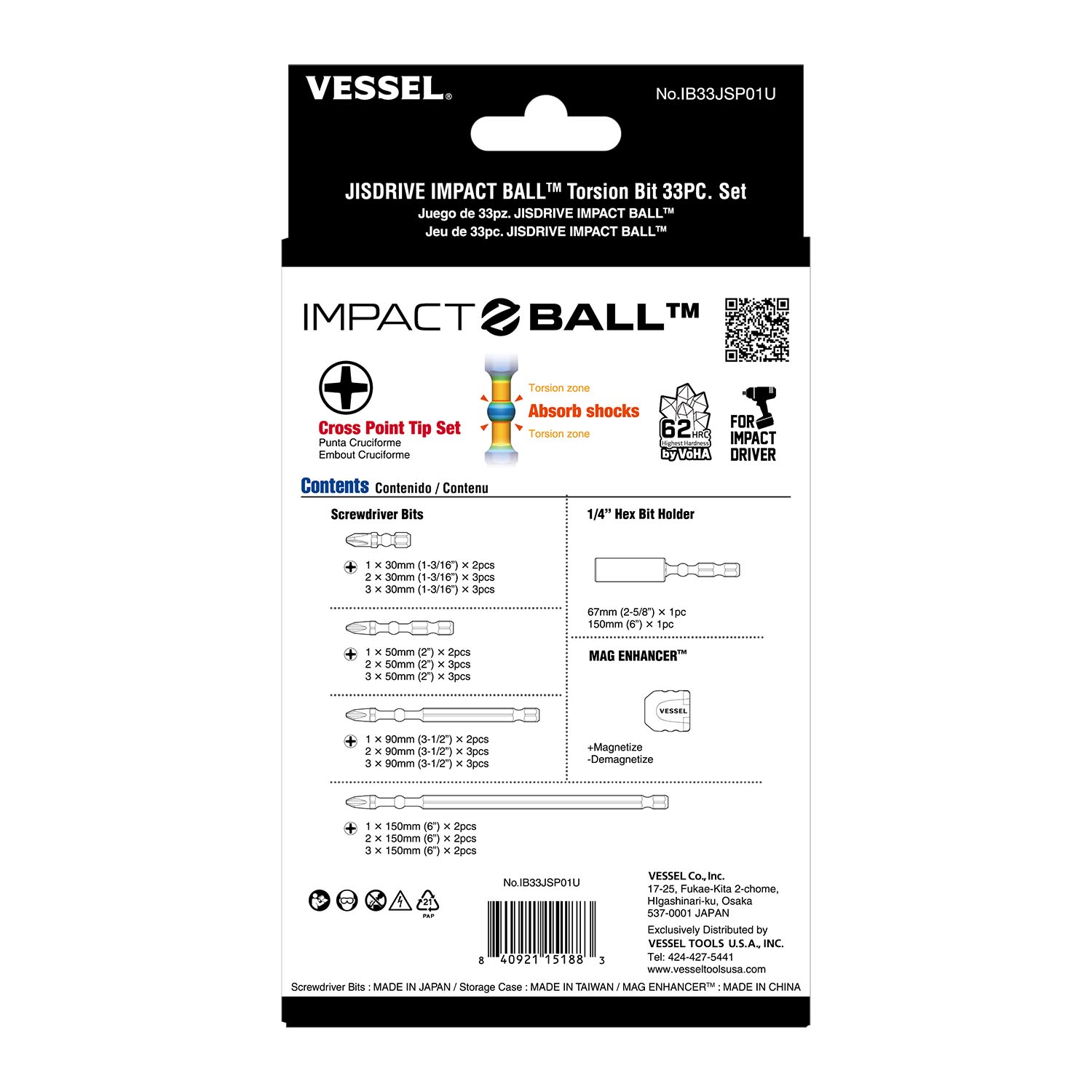 *Includes 2-5/8" and 6" length of impact ball bit holders, +1, +2, +3 JISDRIVE tip sizes with